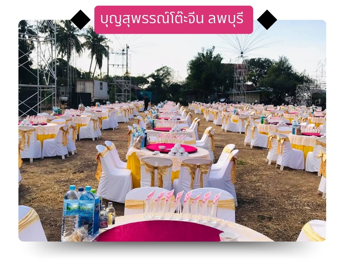 บุญสุพรรณ์โต๊ะจีน ลพบุรี มืออาชีพด้านโต๊ะจีนของแท้ เราตั้งใจให้บริการ ตอบทุกโจทย์จัดเต็มทุกงาน สร้างความพึงพอใจให้เจ้าภาพหลายงานทั้งในลพบุรีและอีกหลายจังหวัดใกล้เคียงมานานกว่า 10 ปี ด้วยอุปกรณ์จัดเลี้ยงหรูหราและครบถ้วน รองรับแขกได้ 400-500 ชุด จัดโต๊ะได้ทั้งในร่ม-ในสถานที่และกลางแจ้ง-นอกสถานที่